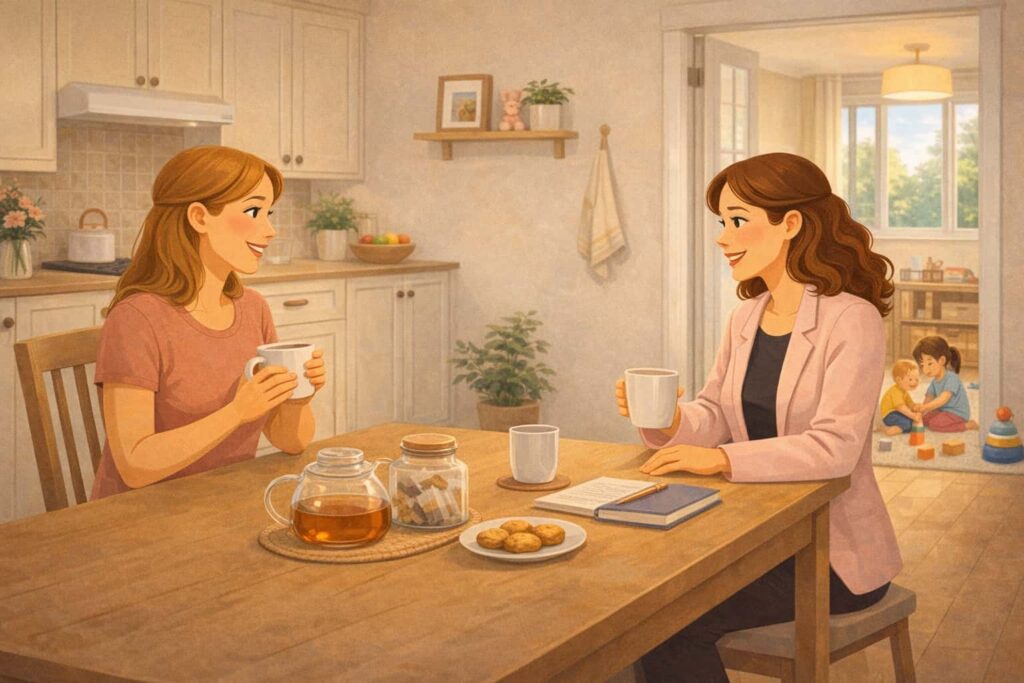 Wichtig ist dabei: Für die Dauer unseres Gesprächs sollte ein möglichst ruhiger Rahmen möglich sein – zum Beispiel, indem sich dein Kind in dieser Zeit selbst beschäftigt, schläft oder eine vertraute Person im Hintergrund verfügbar ist, falls etwas Dringendes sein sollte. So entsteht ein geschützter Raum für dich und dein Anliegen.